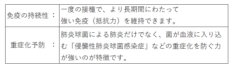 新しいワクチン(20価・21価)は「結合型ワクチン」と呼ばれ、これまでのワクチン(23価)に比べて以下の点が優れています。