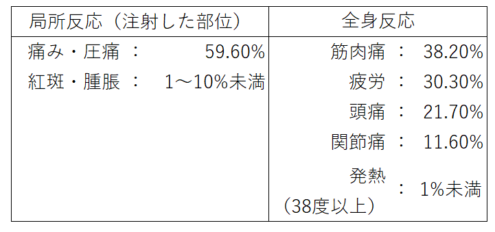 接種をためらう要因となる副反応について、臨床データに基づいた正確な頻度です。