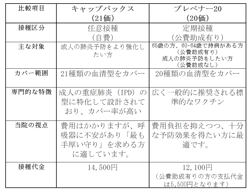〜プレベナー20(定期接種)とキャップバックス(任意接種)の詳細比較〜